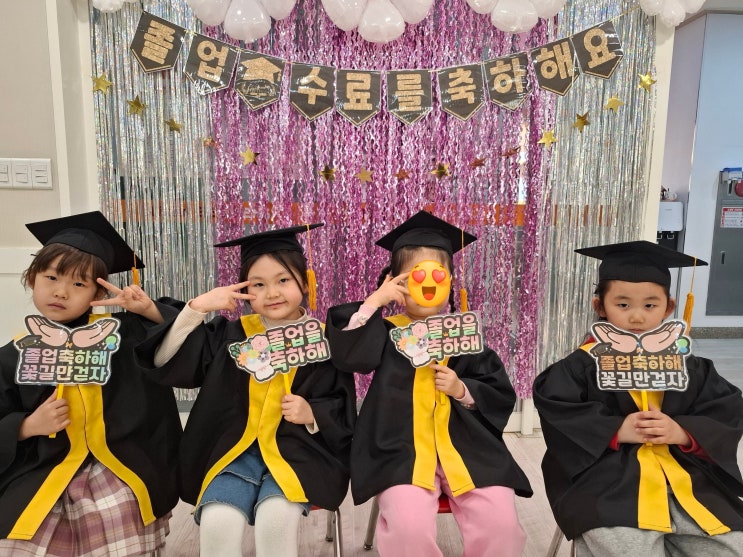 우리 아이들 졸업식, 친구들과 함께한 소중한 순간 오늘은 우리 아이들에게 정말 특별한 날이었습니다. 바로 기다리고 기다리던 졸업식이 있는 날이었어요. 예쁜 졸업 가운과 모자를 쓰고 친구들과 나란히 앉아 있는 모습이 얼마나 사랑스럽던지요. 각자 손에는 “졸업을 축하해”라는 팻말을 들고 귀여운 포즈도 취해 보았습니다. 아이들이 함께 웃고 사진을 찍는 모습을 보니 그동안 함께 지내온 시간들이 떠올라 괜히 마음이 뭉클해졌습니다. 포토존도 정말 예쁘게 꾸며져 있었어요. 반짝이는 장식과 풍선 덕분에 졸업식 분위기가 더 특별하게 느껴졌습니다. 아이들도 친구들과 함께 사진을 찍으며 즐거운 시간을 보냈답니다. 그리고 졸....... <img src="https://blogthumb.pstatic.net/MjAyNjAzMDdfMTQw/MDAxNzcyODkxODg1MTQz.slGROSoLhf9iee6niBGqieXrLZ59WyP9hryE8NJG-D8g.kEnQGHZ4izwSbP-0zs5cSV7xHm9izUdjX_I3aYxY_xwg.JPEG/20260225_124430.jpg?type=s3" />