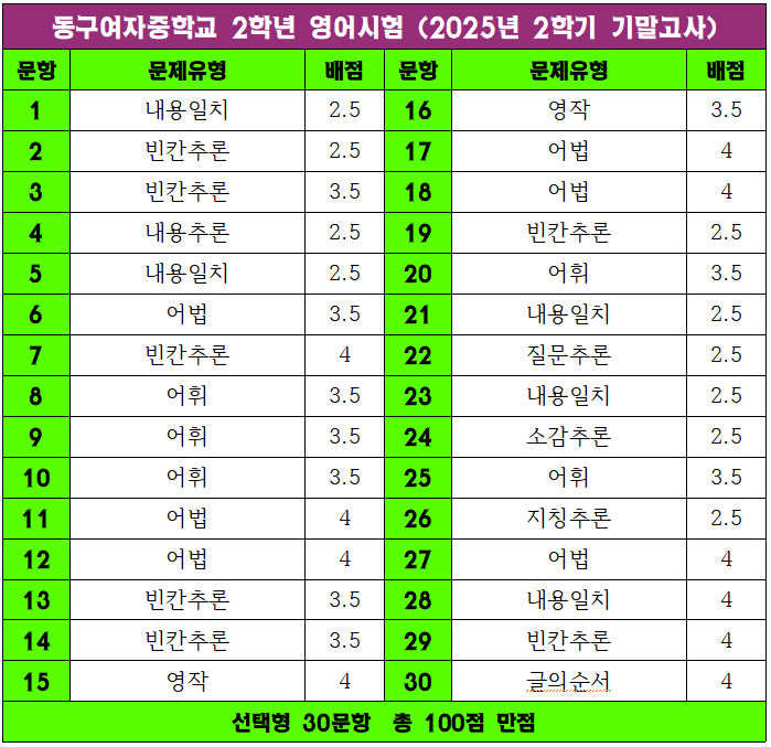 동구여중 2학년 영어시험 (2025년 2학기 기말고사)