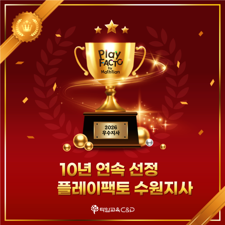 안녕하세요. 교육원과 함께 성장하는 플레이팩토 수원지사장 강인자입니다. 2026년에도 수원지사가 플레이팩토 우수지사로 선정되었습니다. 그리고 어느덧 10년 연속 우수지사라는 뜻깊은 기록을 이어가게 되었습니다. 이 모든 성과는 수원 지역에서 아이들을 위해 늘 최선을 다해주시는 우리 교육원 선생님들 덕분이라고 생각합니다. 진심으로 감사드립니다. 플레이팩토수원지사 010-4468-8570 전국에서도 인정받는 수원지사의 성과 2026년 기준 플레이팩토 전국 약 3,000개 교육원 중 상위 1% 우수교육원 20곳이 수원지사에서 선정되었습니다. 또한 ✔ 우수연산교실 1곳 ✔ 우수운영교육원 4곳 ✔ 상위 1% 우수교육원 15곳 이 함....... <img src="https://blogthumb.pstatic.net/MjAyNjAzMDlfMTAx/MDAxNzczMDMyNDQ0Njkw.vqBb27fr-fp-Ol5p7Imq9modjnmi2U_YWje828gCjWwg.JtgESMAVfB5M0h6XK-R8QB0PbECfZRALBE3FpFaqhCAg.PNG/%BC%F6%BF%F8%C1%F6%BB%E7.png?type=s3" />