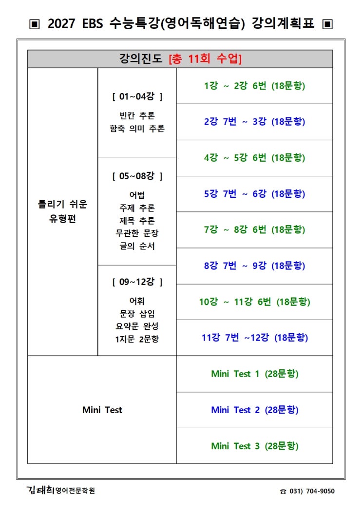 2026 고3 EBS 수능특강(영어독해연습) 강의계획표 [분당 고3 영어]