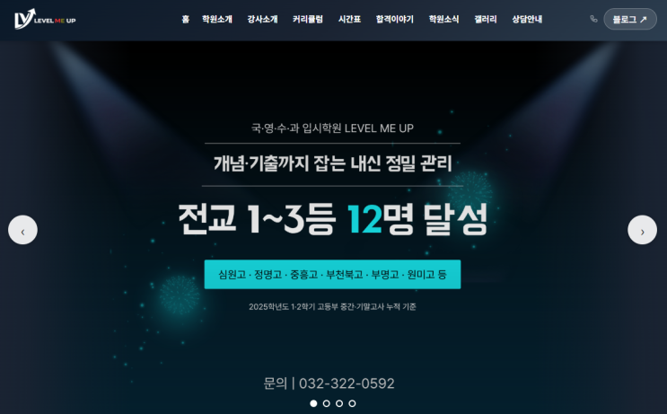 레벨미업학원 홈페이지 오픈