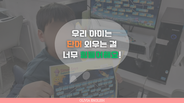 억지로 외우는 100단어보다 스스로 즐기며 터득한 단어가 오래갑니다 안녕하세요, 송파에서 저학년 어린이를 대상으로 영어를 지도하는 올리비아잉글리쉬 학원 원장 김은경입니다. 영어를 시작하는 초등 학부모님들의 공통된 한숨 섞인 고민이 있습니다. "우리 아이는 단어 외우는 걸 너무 고통스러워해요." "깜지(빽빽이)라도 쓰라고 하면 5분도 안 돼서 몸을 뒤틀고 집중력이 바닥나요." 아이들이 단어 암기를 싫어하는 것은 당연합니다. 맥락 없는 철자의 나열을 기계적으로 외우는 것은 뇌 과학적으로도 매우 피로도가 높은 작업이기 때문이죠. 그래서 저희는 단순 암기가 아닌, 경험으로 익힐 수 있게 접근합니다. 지루....... <img src="https://blogthumb.pstatic.net/MjAyNjAyMjJfMjMy/MDAxNzcxNzU5NzIwNTU3.B7RL3Prqp-ZhETJRXi6ZqI7q6Tg7zwwuKxIyhFUw1UAg.4yRixvOPttWEyj2SnNYLh2D6EReVCA23CF4l2vAk0vog.PNG/1.png?type=s3" />