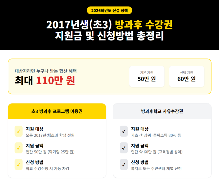 [2017년생 주목] 2026년 초3 방과후 수강권 50만 원 지원! 신청 방법 및 지원금 총정리