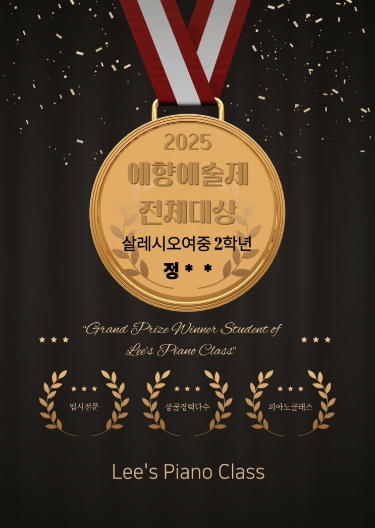 전공생 중학생 제자가 수상소식을 전해왔습니다. 너무 급하게 콩쿨을 잡아 만류도 했었는데, 역시 좋은 재능을 갖은 본인의 역량을 잘 발휘했나 봅니다. 중학생 경연 후 오후에 전체대상 경연을 다시 하게되었다는 연락에 저는 놀라움과 기쁨이 가득했습니다. ^^ 저와 공부 후 처음으로 나간 첫 콩쿨에 전체대상을 수상하게 되었네요. 놀랍습니다. ^^ OO이의 전체대상 수상을 축하합니다! ❤️ <img src="https://blogthumb.pstatic.net/MjAyNTEyMTRfNTEg/MDAxNzY1NzE5NzI4Mjk3.7b5EYyENvjM_RijzVrkomnFme_UDgDWGVvjyzOC-_Kgg.dEB9RvLI9Eg5K5b9BvN1mk-wxIbMiVkc86Qj0H7I4e4g.JPEG/IMG%A3%DF3245.JPG?type=s3" />
