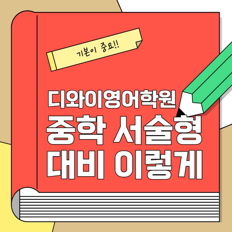 안녕하세요^^ 디와이 영어 학원 '디와이'쌤입니다. 오늘은 제가 수업하고 있는 중학교 시험지 중에.. 한 곳의 시험지를 발췌하여 말씀을 드려보고자 합니다. 시험 문제가 좋았거든요... nice~~(출제 쌤 짱^^!!) 위 시험 문제를 바탕으로 중등에서의 서술형 대비 훈련이 왜? 중요한 것인지...함께 GOGO! 서술형 시험 난이도는 그리 어렵지 않았습니다. 일상적은 상황을 담고 있어 묘사하기 쉽고, 요구하는 문법 요소 또한 중학 교과 과정에서 핵심적으로 다루는 기초 문법입니다. 그리하여, 평소 단어 암기와 영작 연습을 꾸준히 해온 학생들에게는 제시된 조건을 모두 충족 시키며 자연스러운 글 쓰기가 쉬웠을 것입니다. 이....... <img src="https://blogthumb.pstatic.net/MjAyNTEyMTlfMTQ4/MDAxNzY2MTAxOTIwMDA0.plhX6Ts_BiDqpoDeStSC5qeANDKpJi6hg3dn8tIR1Pog.XRnSKlBkTPbibraG0LybxwJzzMrLLHLkb-fwYGxEZxsg.PNG/%BC%AD%BC%FA%C7%FC.png?type=s3" />