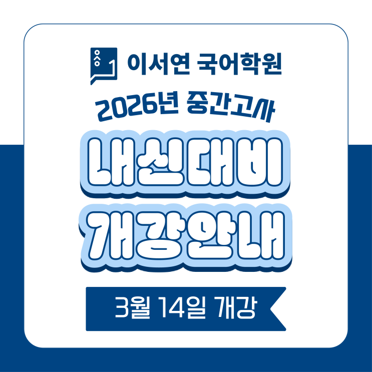 [이서연국어학원] 26년도 1학기 첫 중간고사! + 서연고 ・ 이솔고 ・ 정현고 ・ 신동고 ・ 호연고 + 3월 14일 대개강