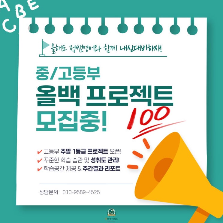[정쌤영어학원] 1학기 올백프로젝트안내