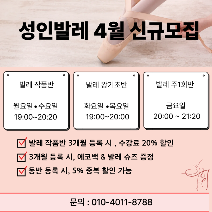 성인발레 4월 신규모집 안내