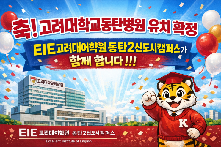 고려대학교동탄병원 유치 확정을 진심으로 축하드립니다. 동탄2신도시의 의료·교육·생활 인프라가 한 단계 도약하는 뜻깊은 순간에 EIE고려대어학원 동탄2신도시캠퍼스가 함께하겠습니다. 아이들의 미래를 키우는 교육으로 지역 성장에 기여하겠습니다. *** EIE고려대어학원 동탄2신도시캠퍼스*** ☎ 031-373-0502 <img src="https://blogthumb.pstatic.net/MjAyNTEyMTlfMzAg/MDAxNzY2MTM1MzYxNjgx.G_teEvng7XMyXtx0wXLIcC9KlAkfiroG2OguDc_CG9gg.trUqMPDhpOSehRuNXlynflBrY1tyVxZOp93BDXKx3oYg.PNG/ChatGPT_Image_2025%B3%E2_12%BF%F9_19%C0%CF_%BF%C0%C8%C4_06_06_54.png?type=s3" />