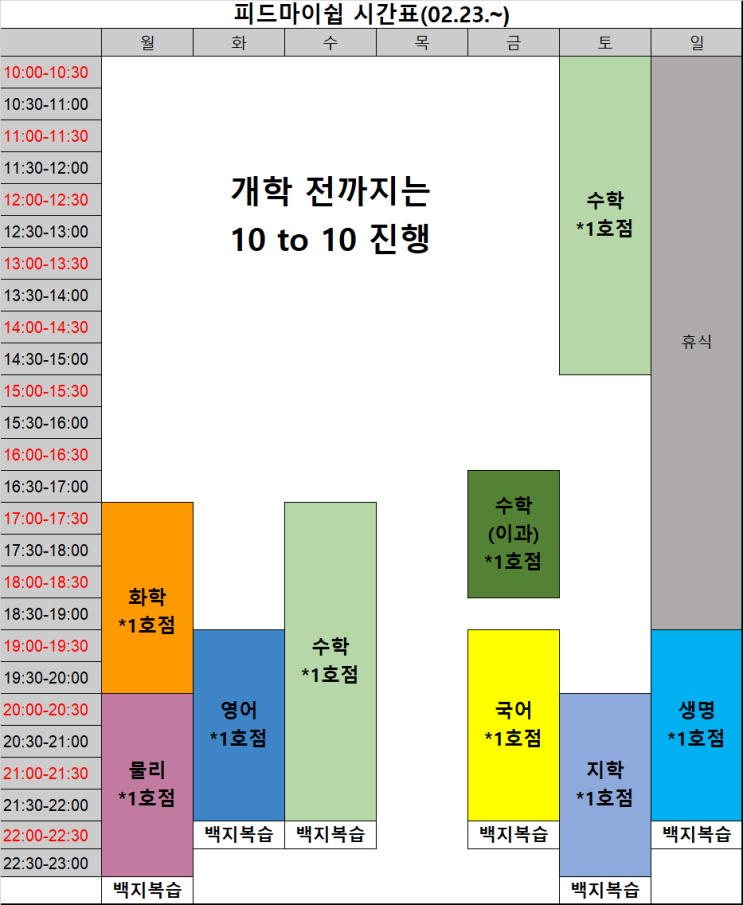 <이과 시간표> <문과 시간표> 피드마이쉽 학원 2학년 1학기 수업 시간표 안내드립니다. 약 3월 중순부터는 학교별 내신반으로 운영됩니다. 이후 변경되는 시간표는 차후 업로드될 예정입니다. *위의 시간표는 다소 변동이 있을 수 있음을 안내드립니다. 문의사항은 02-6956-6422로 전화 부탁드립니다. <img src="https://blogthumb.pstatic.net/MjAyNjAyMjVfNjAg/MDAxNzcyMDA4OTM4OTUw.RMSiLQM6HkRcDjx4FLGyWXwdJrFitZcW6-8Zy8jZT6cg.O_Tx3PXhH2jSYCSr4JDzNHO_rD9lO070OJx_HChGnh0g.PNG/image.png?type=s3" />