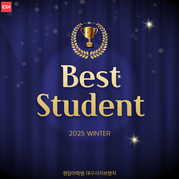 안녕하세요, 시지청담어학원입니다 겨울학기 동안 꾸준한 노력과 성실한 학습 태도로 모범적인 모습을 보여준 학생을 선정하여 Best Student를 발표합니다. 이번 달 Best Student는 수업 참여도와 과제 수행, 학습 태도, 정기평가 등 여러 부분에서 매우 성실한 모습을 보여주었습니다. 특히 수업 시간에 적극적으로 참여하며 스스로 생각하고 문제를 해결하려는 태도가 돋보였습니다. 이러한 꾸준한 노력은 영어 실력 향상뿐만 아니라 자기주도 학습 습관을 만드는 데 큰 힘이 됩니다. 앞으로도 시지청담어학원은 학생들의 노력과 성장을 응원하며 좋은 학습 습관을 만들어갈 수 있도록 함께하겠습니다. Best Student로 선정된 학생에게 큰 축하....... <img src="https://blogthumb.pstatic.net/MjAyNjAxMDZfODkg/MDAxNzY3NjkxMzEzNDE5.KXB5knP4ReNfTiJ8f37kp9EYyWj9_fq7MpC8zbMZ5fEg.9x6gcB1M11Vgy5rhpglQYGLyd_bao3Bz97XDZ8D42i0g.PNG/Best_student.png?type=s3" />