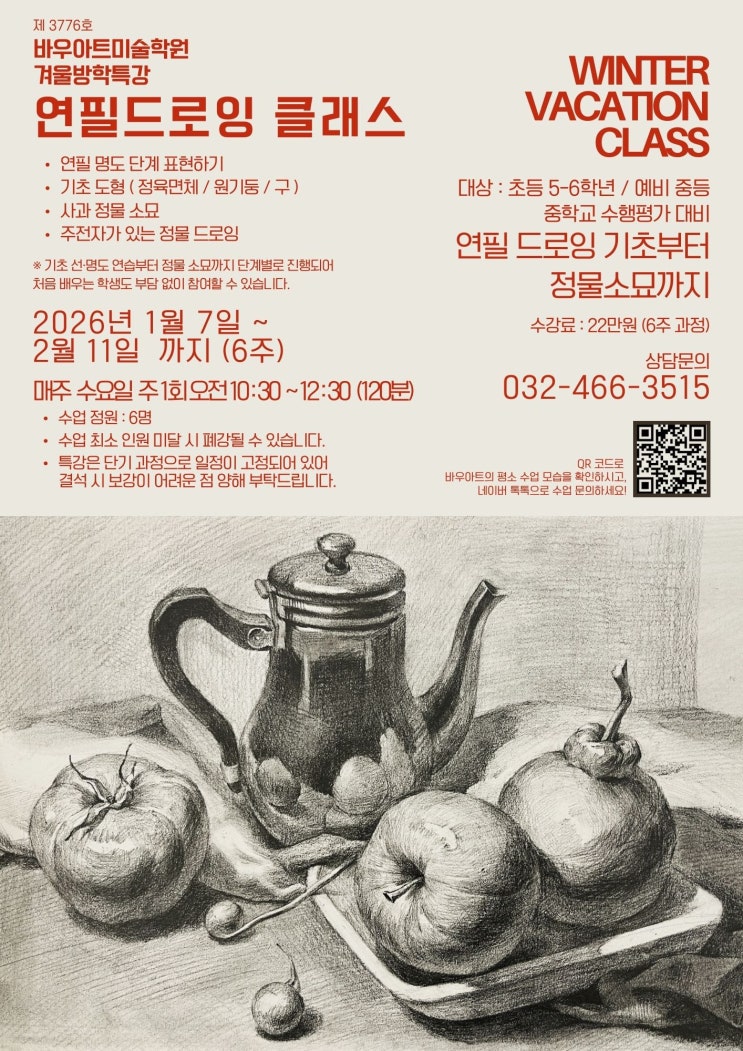 [바우아트미술학원] 겨울방학특강 연필드로잉 모집