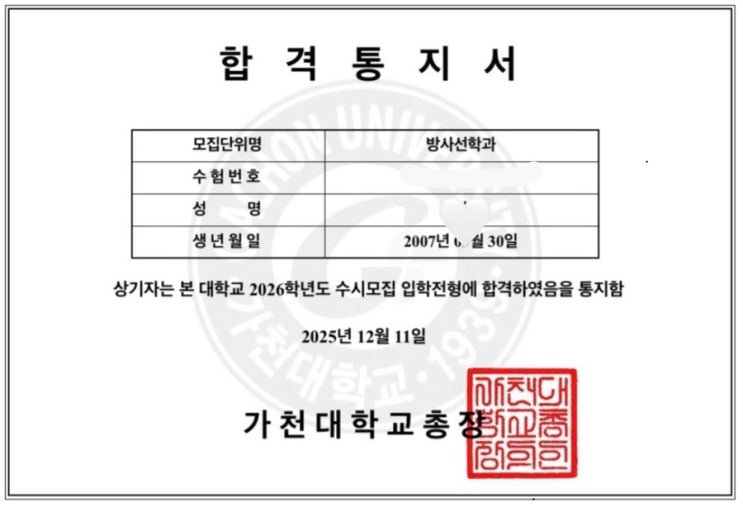 안녕하세요 미래엔영어수학학원입니다 오늘은 학원을 운영하며 꼭 기록으로 남기고 싶었던 정말 기쁘고 벅찬 소식을 전하려고 합니다. 초등학교 시절부터 무려 7년 동안 함께 공부해온 학생이 “가천대학교 방사선학과”에 지역균형 전형으로 최종 합격했습니다 (제일 가고싶어 했던 학교와 학과여서 소식듣고 찡했던..) 가천대학교는 경쟁률이 매우 높은 학교중에 하나인데 최종합격을 했다고 들었을때, 초중고 같이 공부했던 시간이 떠오르면서 울컥하더라구요 지역균형전형은 고등학교 추천을 받은 학생을 대상으로 학교생활을 성실히 한 학생을 선발하는 수시 전형입니다. 한마디로 말하면 “내신 + 학교생활 태도 + 꾸준함”을....... <img src="https://blogthumb.pstatic.net/MjAyNTEyMTZfMjcw/MDAxNzY1ODg2NjYxMzkz.ZPX3g1iwAtOE_vlkQWYD7Q7fczDufU8aMHbrJvIwatYg.htO3qy74pJvFDJMsBCcRFPtzmtujaGsfNxe6h1drD4gg.JPEG/IMG%A3%DF1375.JPG?type=s3" />