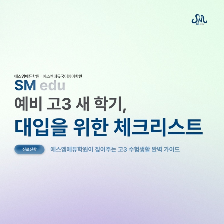 안녕하세요. 에스엠에듀학원입니다. ☺️ 벌써 예비고3 학생들의 새 학기가 코앞으로 다가왔습니다. 고등학교의 마지막 학년이 시작된다는 생각에 우리 학생들도, 곁에서 지켜보시는 학부모님들께서도 기대와 걱정이 교차하는 시기일 텐데요. 아는 만큼 보이고 보이는 만큼 완벽하게 준비할 수 있습니다. 오늘은 성공적인 대학 입시를 위해 개학 전후로 반드시 챙겨야 할 필수 체크사항들을 명확하게 짚어드리겠습니다. 에스엠에듀학원장 에필로그 학생부종합전형은 결국 ‘정리’의 전형입니다. 자신의 진로에 대한 치열한 고민과 그 흔적을 학생부를 통해 매력적으로 증명해 내야 합니다. 수동적으로 수업을 듣는 것에 그치지 않고, 일상....... <img src="https://blogthumb.pstatic.net/MjAyNjAyMjZfMzEg/MDAxNzcyMDk4Nzg0ODcy.Kjj6mULOJa5jM9yqSSQxNlcfpkKw1Nb4Irjsw1TgQFEg._1TXl3DsIPMcJAsSZKhfz2SHDssDWiNzg8NgsKLdxD4g.PNG/260226.png?type=s3" />