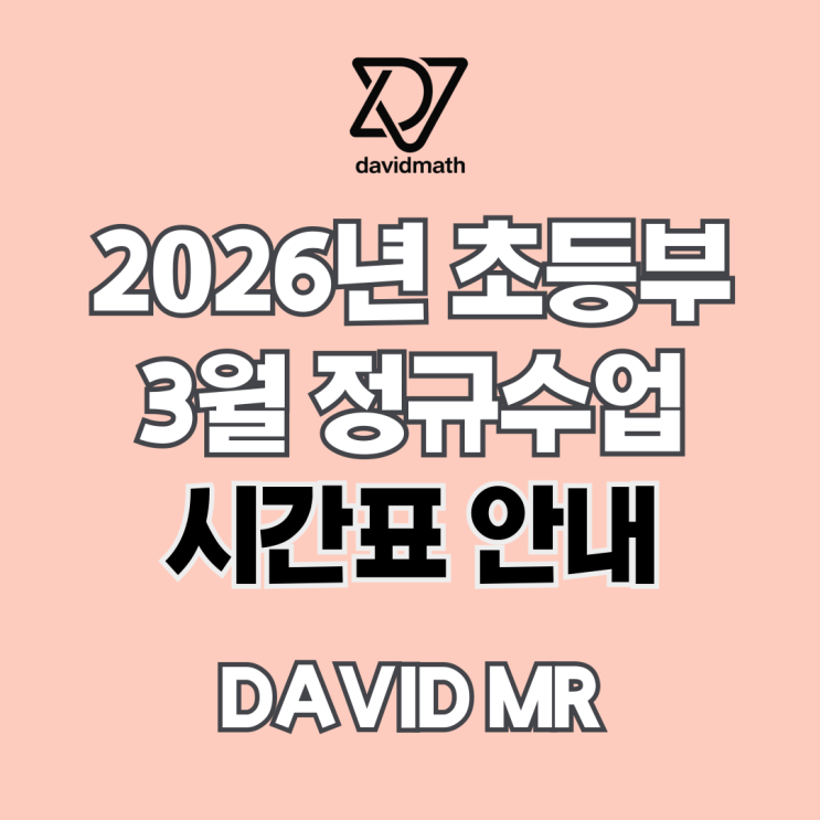 [다비드수학 명륜] 2026년 1학기 초등부 정규 시간표 안내(3/3~)