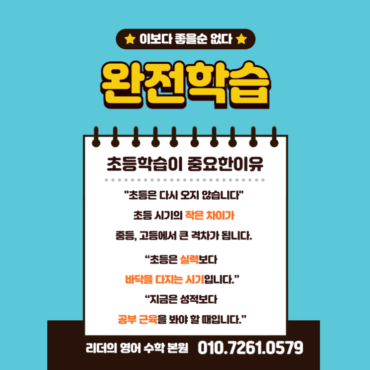 안녕하세요! 리더의 영어 수학입니다. 초등 학습이 중요한 이유 – 이 시기를 놓치면, 나중에 더 힘들어집니다 많은 부모님들이 이렇게 생각하십니다. “아직 초등인데요.” “중학교 가서 해도 되지 않을까요?” 하지만 현실은 다릅니다. **초등은 ‘공부를 배우는 시기’가 아니라 ‘공부할 수 있는 뇌와 습관을 만드는 시기’**입니다. 그래서 초등은 성적보다 공부 습관이 먼저 결정되는 시기입니다. 초등 때 형성되는 습관은 중·고등까지 거의 그대로 이어집니다. ✔ 앉아서 집중하는 시간 ✔ 설명을 듣고 이해하는 태도 ✔ 틀려도 다시 시도하는 힘 영어·수학은 초등에서 방향이 결정됩니다 ✔ 영어 초등 영어는 단어 몇 개 아는 게 중요한....... <img src="https://blogthumb.pstatic.net/MjAyNjAxMjlfMjU3/MDAxNzY5NjgyNjcyNTYx.2QqgMdTbxBKQm9gqy9OBU-tqufFSZ185WyhcvqD1I5gg.JbWBvCeVytRUlDXD5Y7vk5fHkOug0098U-18HsFGCQIg.PNG/%C1%A6%B8%F1%C0%BB_%C0%D4%B7%C2%C7%D8%C1%D6%BC%BC%BF%E4_-001_%285%29.png?type=s3" />