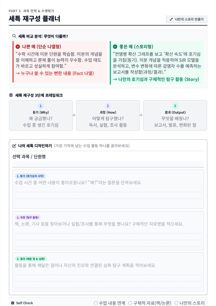 [고교학점제] 중학생 상위권을 위한 비교과 마스터플랜! '비교과의 모든 것- ALL IN ONE 프로젝트' 신청 링크 https://forms.gle/3E3tgd3hgivWeceN6 [고교학점제] 중학생 상위권을 위한 비교과 마스터플랜! '비교과의 모든 것 - ALL IN ONE 프로젝트' 고교학점제 도입과 2028 대입 개편안의 핵심은 단연코 '비교과(학생부 기록 경쟁력)'입니다. 내신 1.0등급과 1.5등급의 지적 차이를 증명하고, 대학 합격의 당락을 가르는 숨겨진 15%의 경쟁력이 바로 여기에 있기 때문입니다. 뼈아픈 현실: 아무리 비싼 컨설팅도 '내 아이의 역량'을 대신할 순 없습니다 많은 학부모님들께서 고1 겨울방학이 되어서야....... <img src="https://blogthumb.pstatic.net/MjAyNjAyMjZfMjkg/MDAxNzcyMDkwMTc1ODQ3.814JT57W58ZaVIrkZUQsBcFGt6xJhQu7hrBVy5D0SKYg.EMgiscBEYy3l9yuV-W276W7JyYpg6YjI9u6Dhce3duog.JPEG/%3F%95%99%3F%97%85%3F%84%A4%EA%B3%84%ED%95%99%3F%83%9D%3F%9A%A9_12.jpg?type=s3" />