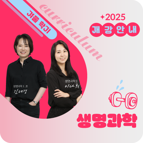 안녕하세요! 짜나에요 이번 주부터 예비(고2) 생명과학 개강으로 잠깐 소개해 드리겠습니다. 올해 예비고2부터 새로운 교육과정이 적용됩니다. 직전 교육 과정에서 생명과학은 여름부터가 진짜다! 라는 말이 있습니다. 기존 교육 과정에서는 여름부터 유전이 시작되기 때문이에요. 개정 교육 과정에서 생명과학은 '진로선택'과목인 '생물의 유전'에 모든 난도가 집중되어 있어요. 그렇다고 해서 나머지가 무작정 쉽다는 건 아니지만, 나머지 과목에 비해 극강의 난도를 가지고 있다는 뜻이에요. 해서, 전체 학습 커리큘럼을 세우기 위해 개정 교육과정 생명과학 전 과목에 대한 안내를 진행해 볼까 해요. 자!~ 지금부터 나오....... <img src="https://blogthumb.pstatic.net/MjAyNTEyMTZfMTE2/MDAxNzY1ODY0ODAxMTg4.3AN44qemBUVAvZJyWKrJ3A28sdEL-9yTDeSL159d8Awg.Ln4N07shdwgckJJ45IaySxtkRFeLAhoOPzP4hRKpcIQg.PNG/2025%B0%B3%B0%AD.png?type=s3" />