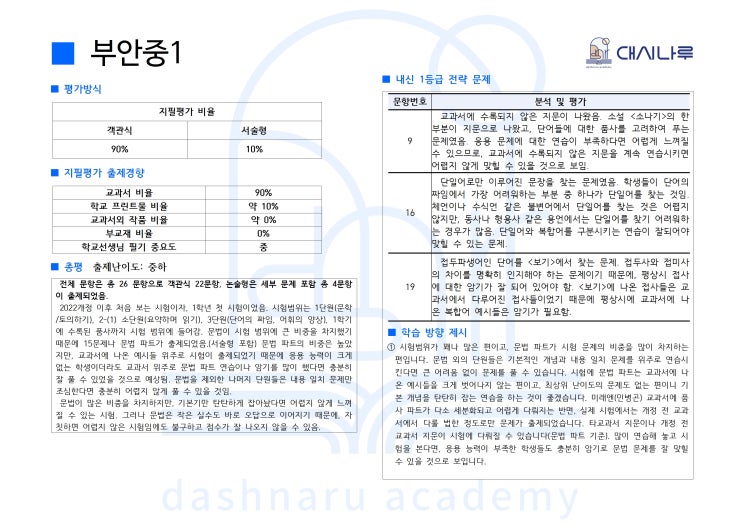#대시나루 #부안중 #평촌국어 #중등국어 #중등내신 #국어내신 #내신만점 #평촌대시나루 #산본대시나루 #산본학원가 #국어기말 "문법 비중이 높았으나 교과서 예시 위주로 출제되어 기본기 학습과 암기가 중요했던, 내용 일치 문제만 주의하면 어렵지 않게 고득점을 노릴 수 있는 시험." 재원생 평균 95점 <img src="https://blogthumb.pstatic.net/MjAyNTEyMTZfNTYg/MDAxNzY1ODcyNzc3MTcw.1oQgyP3Tuw9zhA4GRbw9da27utRlT0rWVtU-Fc-zItMg.6aFzS9JCiDNcqLclR9b0WfpIQhhAdxK0VTMz-vu8uy8g.JPEG/_25-1-2-_%B1%E2%B8%BB_%BA%CE%BE%C8%C1%DF1_%B3%BB%BD%C5%C6%F2%B0%A1%BC%AD001.jpg?type=s3" />