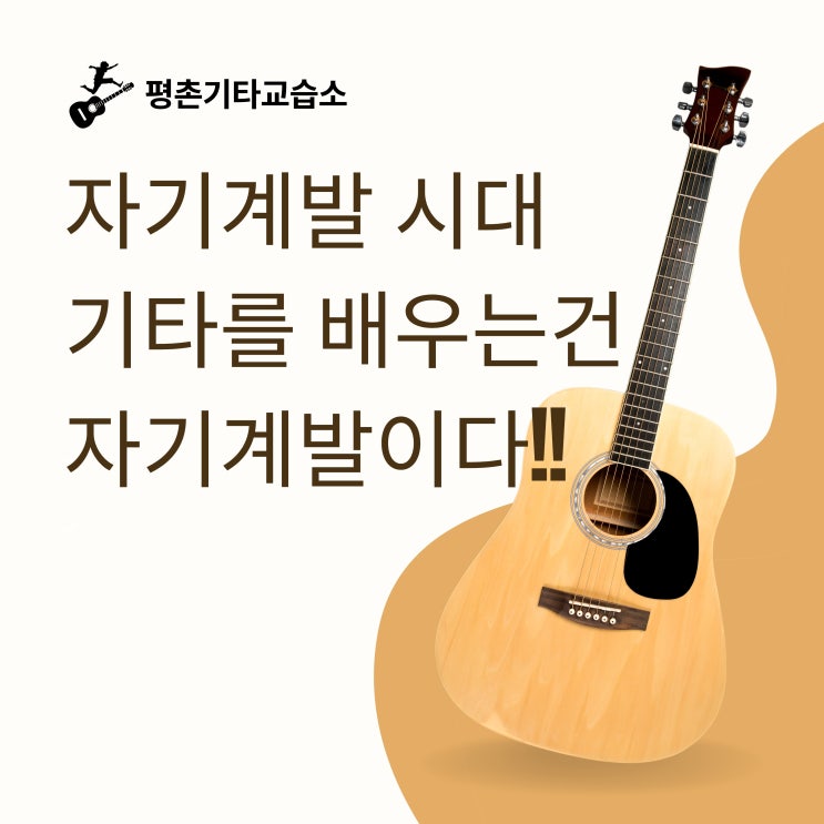 안녕하세요~ 평촌기타교습소 원장 최용우 입니다!! 기타를 배운다는건 단순한 취미생활이 아닌 자기계발입니다!! 그럼 그 이유에 대해 알아볼까요? 기타를 배우는건 단순한 취미생활이 아닌 자기계발이다!! 첫번째는 성취감입니다!! 처음엔 코드 하나도 어렵지만, 연습할수록 실력은 쌓여올라갑니다. 꾸준히 노력했을때의 성취감을 얻을수 있습니다. 두번째는 집중력·인내심 향상입니다. 처음 시작하시는 분들은 아무리 쉬운거라고 해도 어렵습니다. 손이 안 따라주던 걸 반복해서 익히는 과정 자체가 자기훈련이지요. 세번째는 감정 표현 & 스트레스 해소 입니다. 말로 하기 힘든 감정을 음악으로 표현할 수 있어서 정신적인 성장에도 도....... <img src="https://blogthumb.pstatic.net/MjAyNTEyMTdfMTI3/MDAxNzY1OTUwMDM0MzU0.hpDk4OCXYtzYiyM6w6lYrrJ96FWKsR57Nq1kqKs56Rcg.81YLYuMYI0LzjKVZCIfC1DDBzQ0ZGDh4pCy8Lzfuuycg.JPEG/%B1%E2%C5%B8%B8%A6_%B9%E8%BF%EC%B4%C2%B0%C7.jpg?type=s3" />