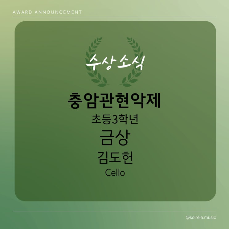 [수상소식]솔레라음악학원/충암관현악제 첼로 금상 김도헌/일산첼로/마두첼로/일산현악학원/마두음악학원