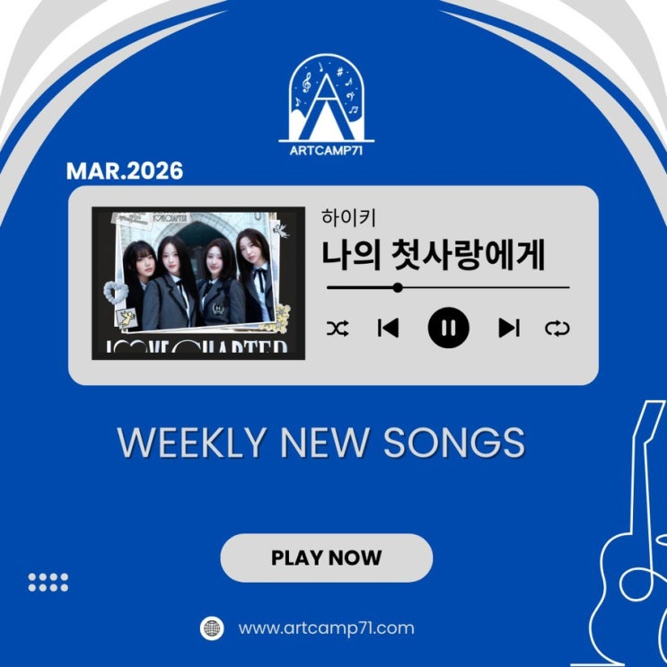 안녕하세요. 아트캠프뮤직입니다. 학부모님들께서 가장 많이 궁금해하시는 부분이 있습니다 ”우리 아이가 지금 어떤 실력이고 어떤걸 배우고 있는 걸까요?” 그 답은 단순합니다. 지금 단계에서 꼭 필요한 곡을 배우고 있는가 입니다. 이번 3월 신곡인 하이키의 ‘나의 첫사랑에게’는 단순한 K-POP 곡이 아니라, 파워코드를 정리하는 핵심 단계 곡입니다. 왜 중요한 곡일까요? - 파워코드를 정확하게 잡는 단계 - 코드 이동을 자연스럽게 연결하는 단계 - 리듬 안에서 연주를 안정시키는 단계 이 3가지를 한 번에 정리하는 곡입니다. 이 곡은 학창 시절의 설렘을 담은 감성적인 곡이지만, 연주적으로 보면 굉장히 좋은 구조를 가지고 있습....... <img src="https://blogthumb.pstatic.net/MjAyNjAzMTlfODAg/MDAxNzczOTExNTI4NTE4.ZychS6r21Jr-L2LbV73DmKOMOFFcPO0eVXT7KjOT6MQg.cYUts0-2I3TYFl_qczyi6cPHZukKzvpB8k-Kl9NJfwgg.JPEG/IMG%A3%DF5556.JPG?type=s3" />