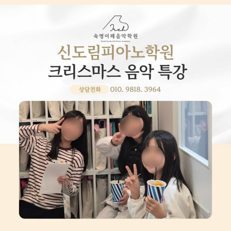 지난겨울 저희 신도림피아노학원에서 크리스마스 음악 특강을 진행하여 그 순간의 이야기를 함께 나누어보려고 하는데요. 이번 특강의 경우에는 아이들이 음악을 더욱 깊게 이해하고 즐길 수 있도록 준비한 특별한 시간이었다는 부분에서 더욱 의미가 있었던 시간이었답니다! 음악 상식 뮤직 마블 게임 이번 크리스마스 음악 특강의 핵심 프로그램 중 하나는 음악 상식을 재미있게 익히고 배울 수 있는 음악 상식 뮤직 마블 게임이었어요. 이 게임은 일반적으로 문제만 푸는 것이 아닌 아이들이 직접 움직이고 생각을 하면서 함께 할 수 있는 보드게임으로 진행을 하게 되었습니다. 이 보드게임은 시중에 판매되는 것이 아닌 저희 신도림 피아노....... <img src="https://blogthumb.pstatic.net/MjAyNjAyMjBfOTEg/MDAxNzcxNTczOTQ5MTgy.dPOU2NOmmiLvjQ0eMxiA2y9RUEVoodaMJspwlJ-K8-sg.jnhFBHohElabQPvCsI2cpIgsTQsNm5T15t13uLsaW-Yg.JPEG/%BD%E6%B3%D7%C0%CF_%BC%F7%B8%ED%C0%CC%B7%B9%C0%BD%BE%C7%C7%D0%BF%F8.jpg?type=s3" />