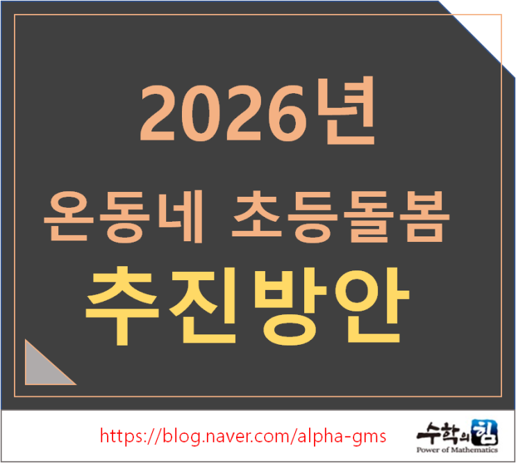 안녕하세요~! 폼나게 공부하고 폼나는 대학가자! 제주 수학의 힘 입니다. 교육부는 지난 2월 3일 초등돌봄 및 교육 정책 추진 방향과 2026년 주요 추진 과제를 담은 2026년 온동네 초등돌봄교육 추진 방안을 발표했습니다. 교육부는 2024년부터 늘봄학교 정책을 통해 초등학교 1, 2학년의 돌봄 공백 해소를 집중적으로 지원해 왔다고 합니다. 2026년부터는 기존의 늘봄학교를 온동네 초등돌봄교육’정책으로 발전시켜, 학교와 지역사회가 함께 희망하는 초등학생에게 사각지대 없는 돌봄을 제공하고, 돌봄보다 교육에 대한 수요가 큰 초등학교 3학년 이상 학생의 방과후 교육 참여를 중점 지원한다고 밝혔습니다. 각 지역에서 지방자치단체와 학....... <img src="https://blogthumb.pstatic.net/MjAyNjAyMDRfMjky/MDAxNzcwMjE0NjMxMjc4.VtV30qlA5uZyTxfgyvIgZHVICtrcpIygILxoAk2oiOEg.EeAv6gjpvZG6cvflBcbHmGRzOp5WL1I0npXQqvnXd54g.PNG/20260204_231507.png?type=s3" />