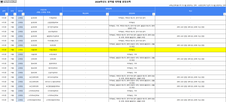 대교협, 2028학년도 권역별 대학별 권장과목 발표
