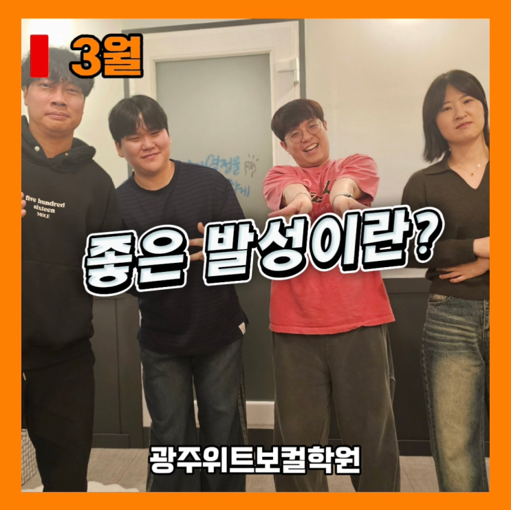 좋은 발성이란 무엇일까요? 위트보컬이 말하는 발성의 핵심을 이야기 해보고자 해요 노래를 배우다 보면 자주 듣는 말이 있습니다. 그게 바로“좋은 발성”입니다. 그런데 많은 분들이 이런 궁금증을 갖곤 하죠. “성량이 커야 좋은 발성인가?” “고음이 잘 나오면 좋은 발성인가?” “목에 힘이 들어가지 않아야 좋은 발성인가?” 결론부터 말씀드리자면 ‘소리를 효율적으로 내는 방법’입니다. 특히 최근 들어 보컬 트레이닝 분야에서 자주 등장하는 개념이 바로 반폐쇄 발성입니다. 이 개념을 체계적으로 설명하고 실제로 훈련에 적용하는 보컬 트레이닝 방식이 바로 광주실용음악학원 위트보컬에서 강조하는 발성법입니다. 오늘은 좋은 발....... <img src="https://blogthumb.pstatic.net/MjAyNjAzMTFfMjMx/MDAxNzczMjA3NzcxOTcw.1XM_WWKVGvwAq3PMnzm74Zd9LxZ_K1RCN1YydfVRgJIg.xVkVuguedpGGYp7h48FrSa-7i6wJ5qGqejgLW5o0Efkg.PNG/1.png?type=s3" />