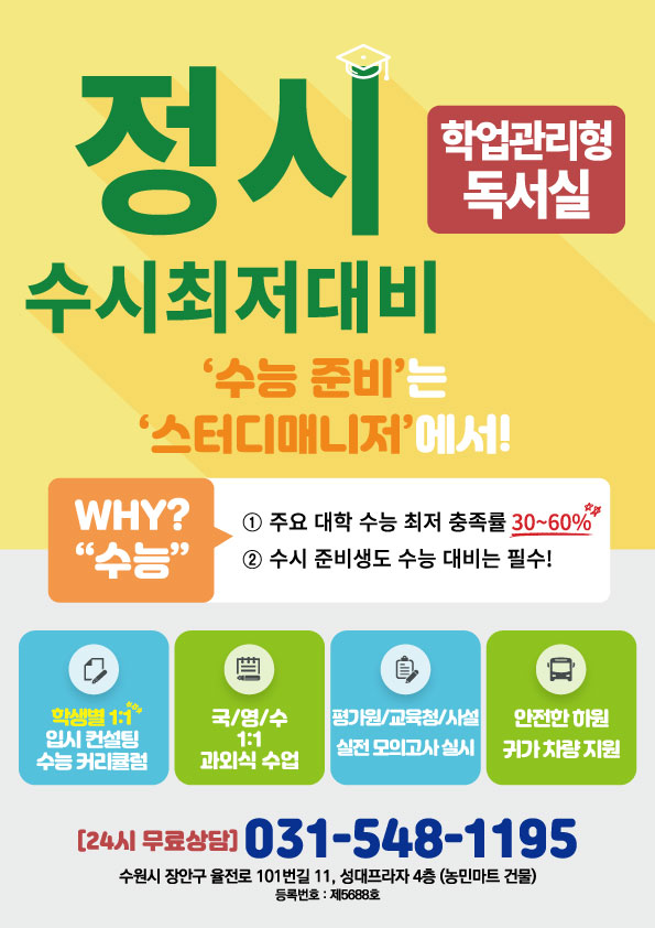 [수능 전문 관리형독서실] 정시 및 수능 최저 준비를 한번에!