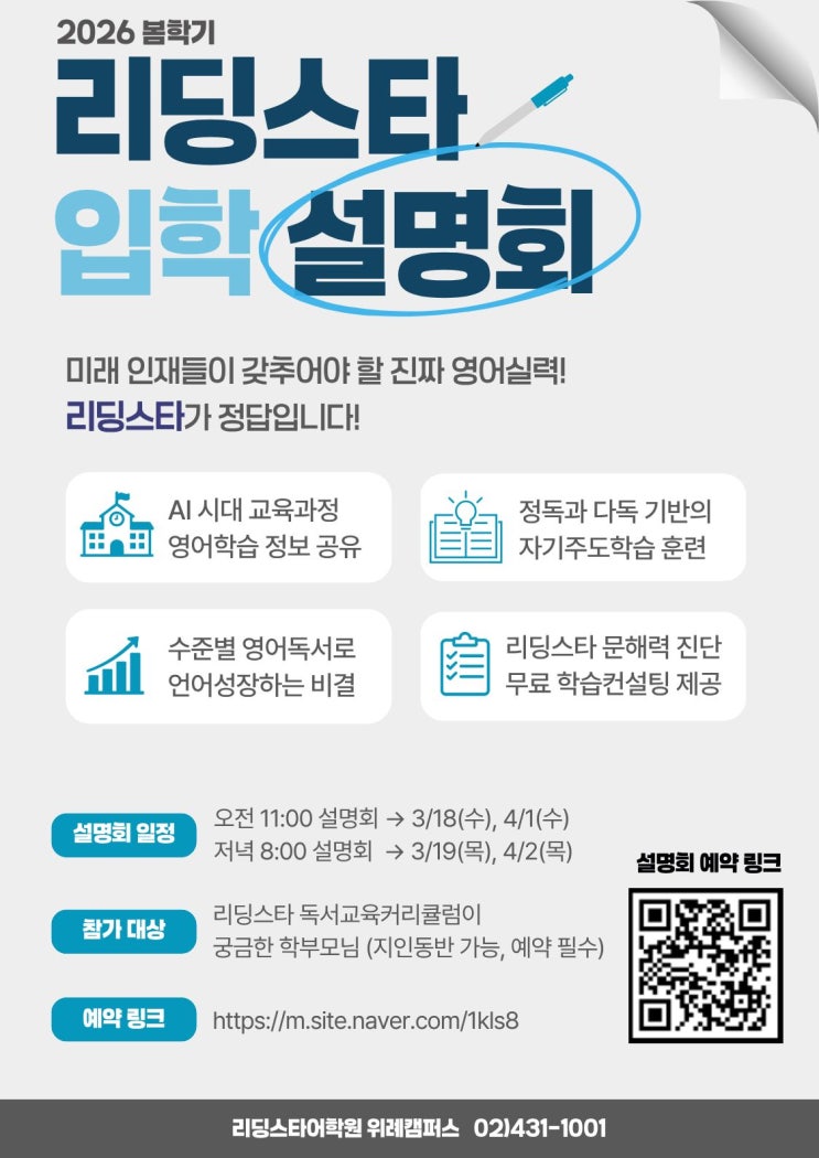 위례영어학원 리딩스타 2026 봄학기 신규입학설명회