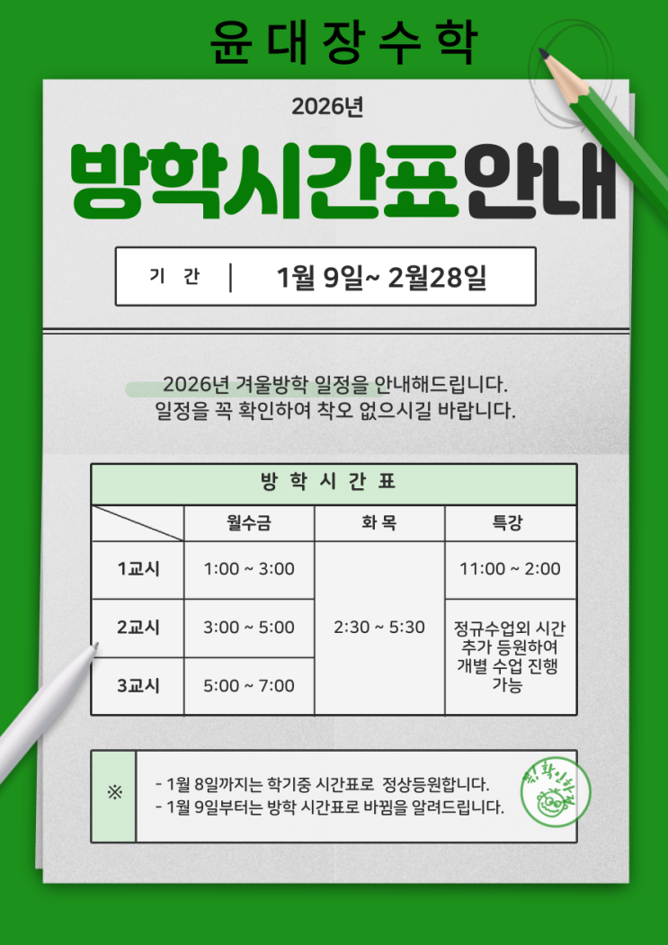 겨울방학시간표 (26년 1월 9일~2월 28일)