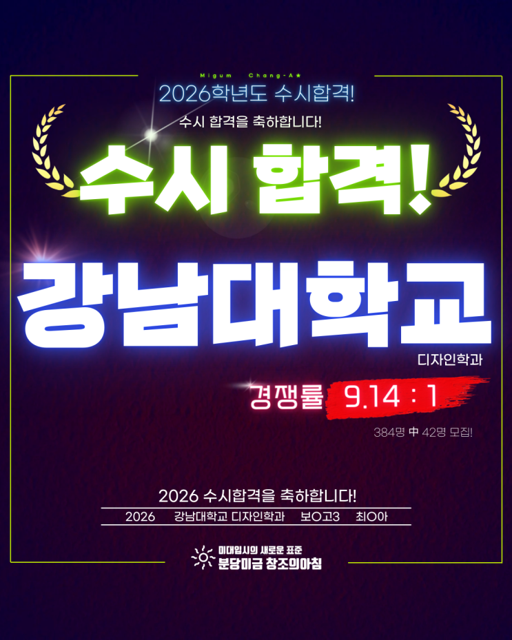 2026 수시 강남대학교 디자인학과 합격! - 분당미금역창조의아침미술학원