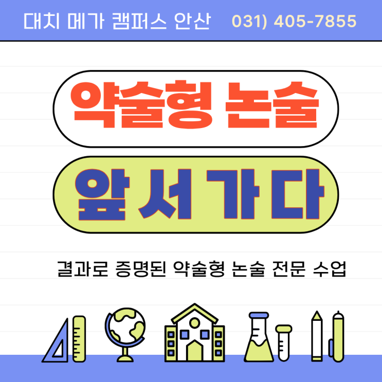 정확한 방향!!! 출제 의도·구조·감점 포인트까지 !!!! 결과로 증명된 약술형 논술 전문 수업 !!!!! 약술형 논술, 정확한 방향과 체계적인 준비가 합격을 만들어냅니다. 약술형 논술은 분량이 짧다는 이유로 쉽게 생각되기 쉽지만, 실제 전형에서는 가장 명확하게 실력 차이가 드러나는 논술 유형입니다. 제한된 시간과 분량 안에서 출제 의도를 정확히 파악하고, 감점 없이 핵심을 전달해야 하기 때문에 체계적인 준비 없이는 안정적인 결과를 기대하기 어렵습니다. 왜 약술형 논술은 ‘전문 수업’이 필요할까? 약술형 논술은 채점 기준이 단순해 보이지만, 실제 평가에서는 다음과 같은 요소가 매우 중요하게 작용합니다. 문제 요구를 정확히 반....... <img src="https://blogthumb.pstatic.net/MjAyNjAyMDVfMTMx/MDAxNzcwMjYzOTEzMDgx.C4TObTkVZzQoDWoK6Y5Er4Ui1L4jBK1pe8q7EfTJhEAg.f8D_nN24NwWtzaNZQQJpuM7710E_0vZWw-iVq3mpMSgg.PNG/%BE%E0%B3%ED1.png?type=s3" />