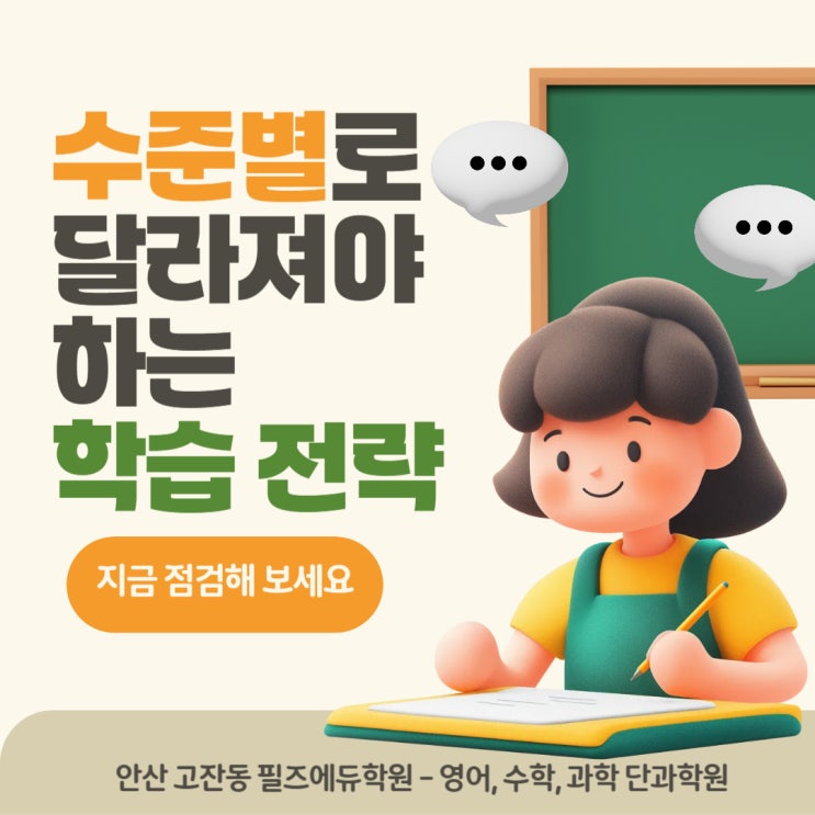 수준별로 달라져야 하는 학습 전략, 지금 점검해 보세요 [안산 고잔동 영어, 수학, 과학학원 - 필즈에듀학원]