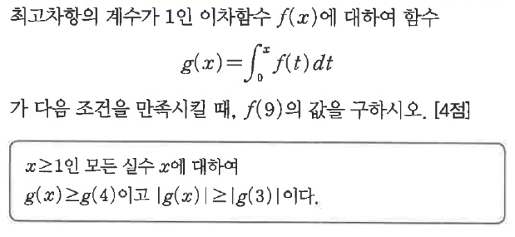 수학뿐 아니라 시험을 보는 모든 학생들에게 제일 중요한 건 무엇일까요? 바로 바로 30초 뒤에 공개됩니다 가 아니라 문제의 출제 단원 분석 출제의도 분석 주어진 근거들의 해석 능력 이라고 할 수 있습니다. 이런 문제를 읽었다고 생각해 볼게요 그럼 이제 문제의 출제 단원 : 정적분 중에서 적분과 미분의 관계가 떠오르고 출제의도 : 적분과 미분의 관계를 이해하고 함수의 그래프를 그릴 수 있는가 이제 해석을 해볼게요 최고차항의 계수가 1인 이차함수니까 정도 써볼 수 있겠죠 두 번째 줄은 학생들에게 계속 강조한 부분 적분식이 주어지면 미분, 미분식이 주어지면 적분 을 해서 함수를 찾아본다 그리고 keyword로 주어진 상수부터 x까....... <img src="https://blogthumb.pstatic.net/MjAyNTExMTdfMTI1/MDAxNzYzMzc5NDI4MTE3.NXDXdnceB83dVMILmkpGYNvHWQn_xin-HR1gr3Sft98g.W--VH1rPNVnQJNpHrG38MeNro6ZYQZJ-mYMsxN1M7F4g.PNG/image.png?type=s3" />