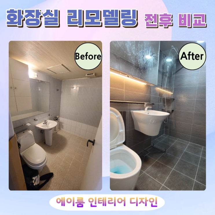 노후 욕실을 깔끔하게 바꾼 에이룸 인테리어 시공 안녕하세요 에이룸 인테리어입니다. 오늘은 부천시 중동 구축 아파트 오래된 욕실 화장 리모델링 시공 후기를 소개해 드리려고 합니다. 이번 현장은 약 20~30년 정도 된 구축 아파트였는데요. 세월이 오래된 만큼 욕실 설비와 배관 상태도 함께 노후된 상황이었습니다. 사실 오래된 아파트 욕실 공사는 작업할 때 가장 신경을 많이 쓰는 현장입니다. 특히 수도 배관이 오래되어 작은 충격에도 파손될 위험이 있기 때문입니다. 오래된 수도배관을 완전히 안전하게 작업하는 방법이 있을까요? 현실적으로 말하면 확률을 낮추는 방법은 있지만 100% 완벽한 방법은 없습니다. 그만큼 경험과 꼼꼼한 작....... <img src="https://blogthumb.pstatic.net/MjAyNjAzMDZfMTU5/MDAxNzcyNzk2NTY2MDkz.x8RQ38bzZ43VLrYegCKe4aFrcnDRu1iWAyLga4QpWcUg.AOM5e-Zz7AcpCDN1n6wj3mKG9nLEm4bnR-al_lUOCbQg.JPEG/%C0%FC%C8%C4%BB%E7%C1%F8_%281%29.jpg?type=s3" />