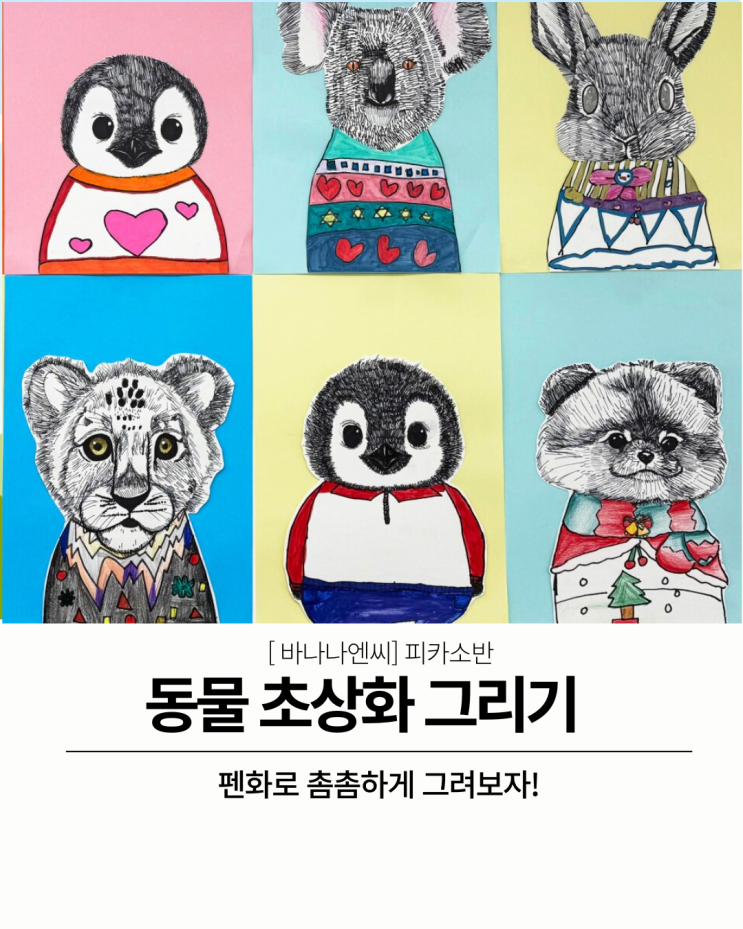 안녕하세요~ 군포 산본 미술학원! 초등전문 미술학원! 바나나엔씨 미술학원 피카소반의 수현T입니다 우리 피카소반 친구들은 지난 달 펜화에 대해 자세히 배워보고 기법을 응용하여 '동물초상화' 를 멋지게 그려보았는데요! 짜잔! 이렇게 멋지게 완성해준 친구들이에요 ㅎㅎ 어떻게 수업했나 보실까용?? 먼저 활동지를 통해 수업 내용을 자세히 파악하고 연습해보는 시간을 가졌습니다. 그동안 저와 수업을 하면서 우리 아이들이 정말 많이 사용했고, 사용하고 있는 방법! 바로 그리고자 하는 것을 간단히 도형화 하는 것인데요~ 쉬워보이지만 관찰력과 응용력이 필요하고 그림의 도입부에서 아주 중요한 역할을 해주는 방법이기 때....... <img src="https://blogthumb.pstatic.net/MjAyNjAyMDdfMzAw/MDAxNzcwNDI3NTMyMzc5.NNj1ZHJIS0KgRTchHXlJRqOf3_rpCzamrhTr0EiX1lIg.TNW4zjt8_Qsj_J4-jJumYN-CIdIsKpnIIgxwuIarIfwg.PNG/%B0%CB%C1%A4%BB%F6_%BD%C9%C7%C3%C7%D1_%C1%A6%C1%D6%B5%B5_%BF%A9%C7%E0_%C3%DF%C3%B5_%C0%CE%BD%BA%C5%B8%B1%D7%B7%A5_%B0%D4%BD%C3%B9%B0.png?type=s3" />