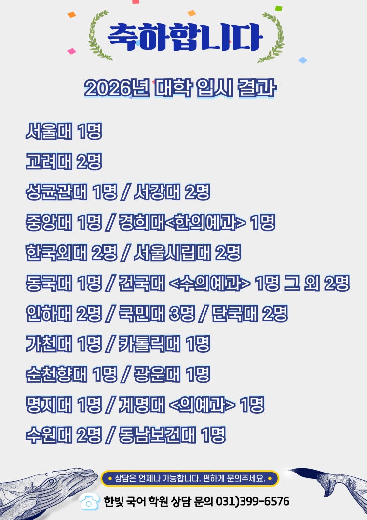 [산본 한빛 국어] 2026 대학 입시 결과❗️뚜둥