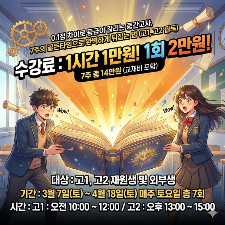 0.1점 차이로 등급이 갈리는 중간고사, 7주의 골든타임으로 완벽하게 뒤집는 법 (고1, 고2 필독) "성적을 올리고 싶은 간절함만 가지고 오세요. 나머지는 힘클래스가 채워드리겠습니다." 안녕하세요. 학부모님! 군포 산본동에서 단 한 명의 아이도 포기하지 않는 밀착 관리를 실천하고 있는 산본 수학학원 힘(HIM)클래스입니다. 어느덧 긴 겨울방학의 끝자락, 2월입니다. 이제 곧 새학기가 시작된다는 설렘과 함께, 학부모님들과 우리 학생들의 마음 한편에는 묵직한 걱정이 자리 잡고 있을 것입니다. "이번 중간고사, 과연 잘 볼 수 있을까?" "고등 내신은 중학교와 다르다는데, 지금 실력으로 충분할까?" 특히 예....... <img src="https://blogthumb.pstatic.net/MjAyNjAyMTRfMTIx/MDAxNzcxMDM5NTg0OTg4.1f072CFFpcrk0Zktsq0fMB_TWCBbvIQf6oVNca4ggjcg._DI_UEBX2-3ownsIgKtR07WZv9Nm8CvKsq0sV_48-k8g.JPEG/%B3%BB%BD%C5%C6%AF%B0%AD2.jpg?type=s3" />