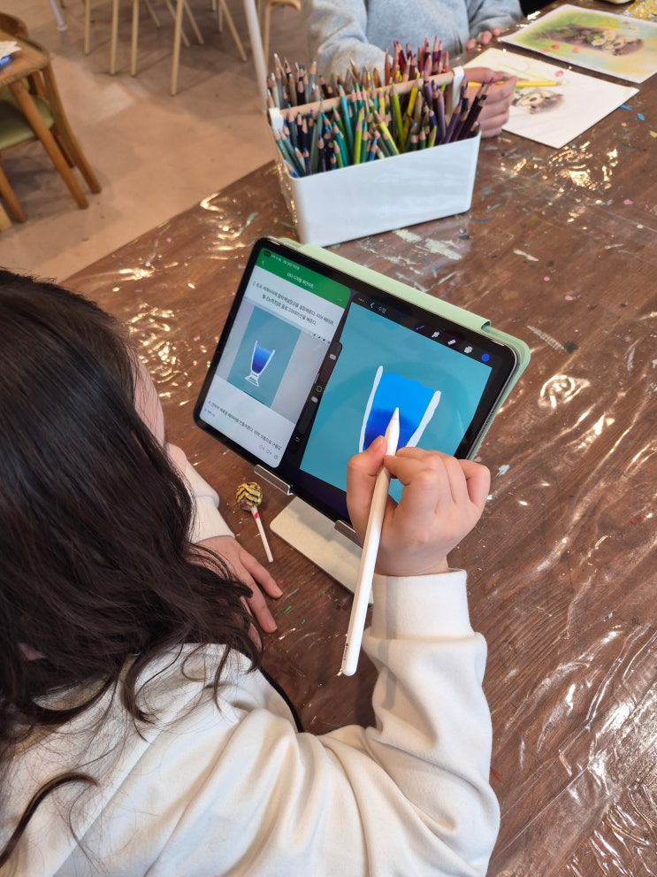안녕하세요. 상상숲미술학원입니다:) 디지털 드로잉, 집에서 혼자 해도 되지 않을까요? 요즘 아이들, 태블릿으로 그림 정말 잘 그리죠. 유튜브만 켜도 따라 그릴 영상이 넘쳐나고, 프로크리에이트 사용법도 쉽게 배울 수 있습니다. 그래서 많이들 이렇게 생각하세요. “굳이 학원에서 배워야 할까요?” 그 질문에 대해 저희는 이렇게 말씀드리고 싶어요. 디지털 드로잉은 단순한 ‘앱 사용 기술’이 아니라 엄연히 ‘미술’입니다. 1. 디지털 드로잉은 ‘순서’가 중요합니다. 아이들이 집에서 그릴 때는 보이는 부분부터 바로 디테일을 넣는 경우가 많습니다. 하지만 미술은 순서가 있습니다. 스케치를 할 때는 처음부터 디테일을 잡지 않고 큰....... <img src="https://blogthumb.pstatic.net/MjAyNjAzMDVfMjc2/MDAxNzcyNzA4NzM0NDg5.-zP35Gu5CJnEo253KrSmj-AwoLBkO5UG6xs6faohDRwg.kKORmRR3kc3fY2p4kKHiQ4dM1BAFq3P0RDfBR96uea0g.JPEG/KakaoTalk_20260227_111136604.jpg?type=s3" />