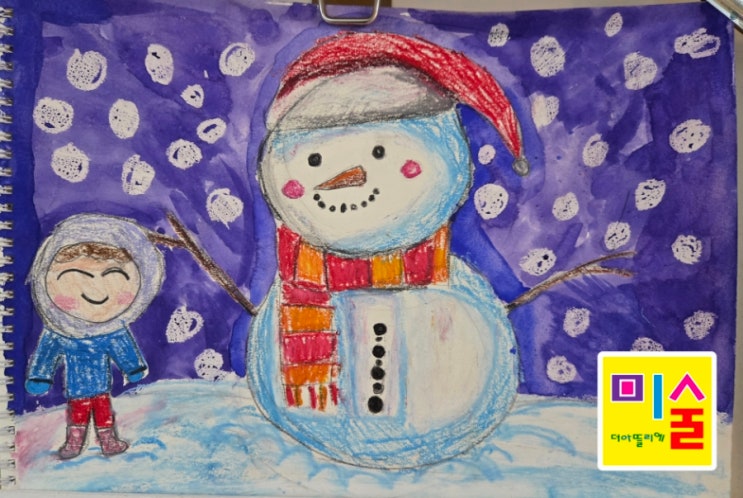 ❄️ 눈사람은 내 친구 채연의 겨울 이야기 차가운 겨울날, 하얀 눈이 소복이 쌓인 풍경 속에서 채연이는 특별한 친구를 만들었습니다. 바로, 눈사람이에요 ☃️ 채연이의 그림 속 눈사람은 빨간 모자와 알록달록한 목도리를 두르고 두 팔을 활짝 벌린 채 서 있어요. 그 옆에는 환하게 웃고 있는 채연이의 모습도 함께 담겨 있습니다 눈사람과 친구처럼 나란히 서 있는 모습에서 혼자가 아닌 ‘함께하는 즐거움’이 느껴지는 작품이에요. 보라색과 파란색이 섞인 밤하늘 위로 눈이 소복소복 내리는 장면을 물감과 크레파스를 함께 사용해 표현했어요. 하얀 눈이 톡톡 튀어나온 듯한 질감 표현 덕분에 정적인 그림이 아니라 ‘지금도 눈이 내....... <img src="https://blogthumb.pstatic.net/MjAyNjAyMTlfMTY0/MDAxNzcxNDk0ODY5NjQx.B9EWtKj7BBml_PZvrZ5b-jngrdI_OixFfiXBvmg-VHog.gddZ-aga8meh9sAe_-n4eV-K71Pm2sRavC0UMqUwHJQg.JPEG/900%A3%DF20260115%A3%DF173052.jpg?type=s3" />