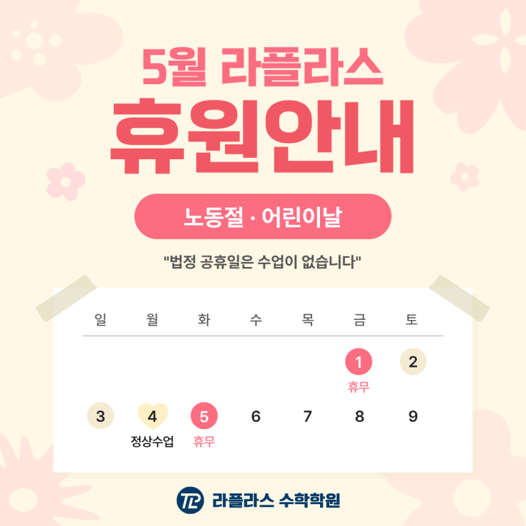 5월 휴원 안내| 풍무동 라플라스 수학학원