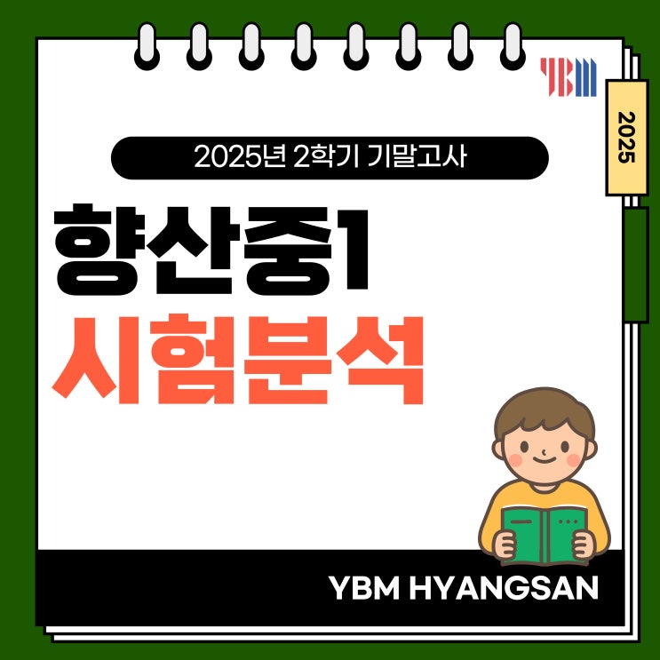 안녕하세요! 초중고 전문 어학원 YBM잉글루 향산 캠퍼스입니다. 오늘은 고촌 어학원 YBM 향산중1 시 험 분 석 을 진행하려 합니다^^ 중 학 교 1 학 년 첫 시 험! 중학교에 입학하여 첫 시험을 응시한 우리 학생들! 작년에 비하여 어떻게 시험 출제가 되었을까? 많은 학생, 학부모님들께서 궁금하실 텐데요. 24년에 이어 25년에도 서술형이 3문항 출제되었으며, 어휘의 힌트도 제시되지 않았기에 더욱 난이도가 상승되었습니다. 그렇다면, 이번 시험 경향성을 YBM 향산 캠퍼스에서 상세히 분석해 드리도록 하겠습니다^^! 출 제 유 형 Check ! 1 학 년 2 학 기 기 말 고 사 총 평! 오늘은 고촌 어학원인 YBM 향 산 중 학 교 1학년 학생들의 첫, 내....... <img src="https://blogthumb.pstatic.net/MjAyNjAxMTRfMjU3/MDAxNzY4MzYxMDA0MzY4.auI6KP5dRNhOmvCufcZL7N05d_bhFiFqtgPg2pcEIFEg.RPWwVfjkNbGV9kvRNrEV1-YGckKc3pqxCLmx6jVakYsg.JPEG/002.jpg?type=s3" />