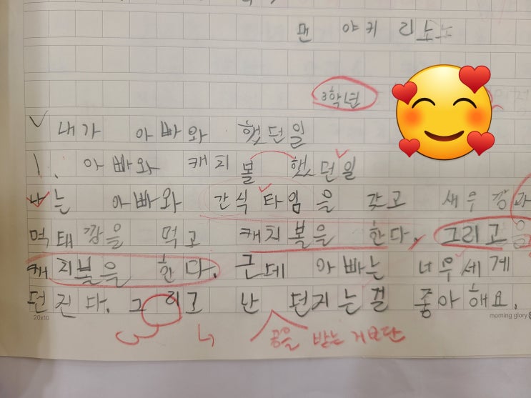 김OO 학생은 초등학교 3학년입니다. 윤슬독서논술만의 3개월 학기제 커리큘럼을 통해 초등 3학년 국어 실력 어떻게 달라졌는지 보여드릴게요. 맞춤법은 기본적으로 잘했지만 ‘이다-이에요/예요’, ‘안/않’, ‘되/돼’ 같은 까다로운 부분에서는 자주 헷갈렸습니다. 비문학 지문은 빠르고 정확하게 이해했지만, 문학은 어려워했습니다. 문학은 긴 호흡으로 읽어야 비유와 상징을 잡아낼 수 있습니다. 학생은 긴 호흡이 필요한 문학이 어려웠습니다. 중복된 표현이 많고 표현이 단순합니다. 윤슬독서논술만의 특별한 커리큘럼- 3개월 학기제 윤슬독서논술은 3개월 학기제로 학생별 목표를 세우고, 수업마다 기록을 남겨 학부모님께 공유합니다. ....... <img src="https://blogthumb.pstatic.net/MjAyNjAxMjBfMjgg/MDAxNzY4OTA3NDQ1MDE3.JfgEFRXHVHa6La7bNltHDhrheBfs2DjlUJjVAfoqxaAg.s8Z5-ZR-1BNbyzFtJWbmce048m0hMW-r7l5HaX1zOx4g.JPEG/%C0%AF%C1%A4-%C4%B3%C4%A1%BA%BC.jpg?type=s3" />