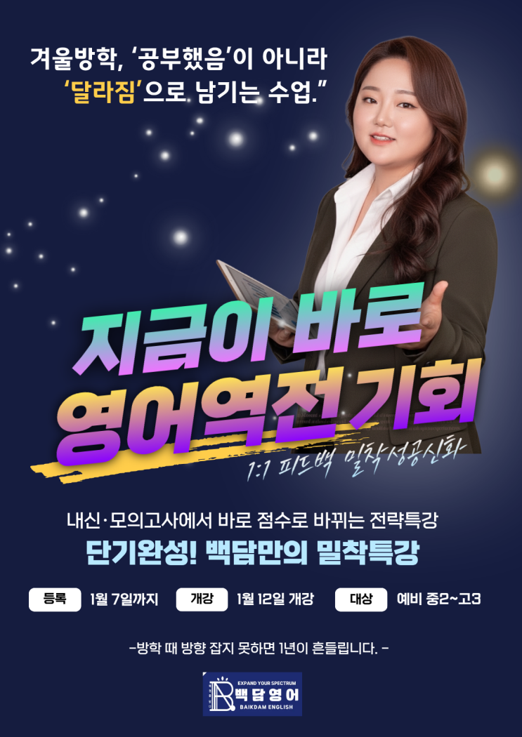 방학이 달라지면 영어 성적이 달라집니다|동탄 영어 백담영어 원장직강 밀착수업