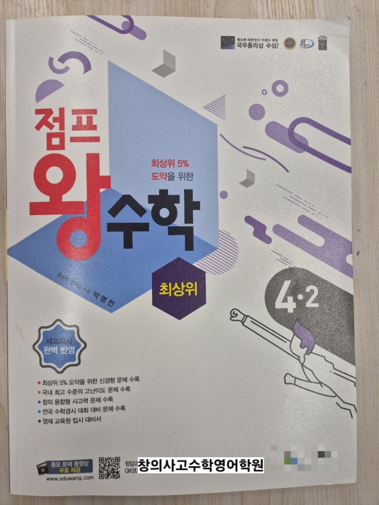 초등심화 최상위 점프 풀기 – 생각의 깊이를 키우는 수업 안녕하세요. 창의사고수학영어 입니다. 초등 고학년이 되면 학부모님들께서 가장 많이 하시는 질문이 있습니다. “선행을 더 나가야 할까요?” 저는 그 질문에 앞서 먼저 묻습니다. 지금 배우는 내용을 얼마나 깊이 이해하고 있나요? 오늘은 초등 심화 교재인 「점프 왕수학 최상위 」를 활용한 수업 이야기를 나누려 합니다. 이 교재는 단순 응용 문제가 아니라, 사고 과정을 요구하는 고난도 문제들로 구성되어 있습니다. 계산 실수 하나를 줄이는 훈련이 아니라, 문제를 해석하고 구조를 파악하는 힘을 기르는 데 목적이 있습니다. 1. 문제를 읽는 힘부터 다릅니다 최상위 단계 문제....... <img src="https://blogthumb.pstatic.net/MjAyNjAyMDRfMjkx/MDAxNzcwMjA4NDEwODAy.D4M0nEmc68_MmJjhFdgpTkKYyLVKQ4M8R_9tvLnj_KEg.srQHX8lXdT6ddthpF3YUrMP6VKDgN5FWot2rM0icLmsg.JPEG/900%A3%DF1770208410193.jpg?type=s3" />