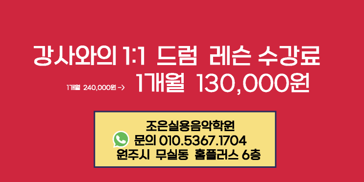 [드럼 레슨 수강료:13만원] 무실동 조은실용음악학원 드럼스쿨