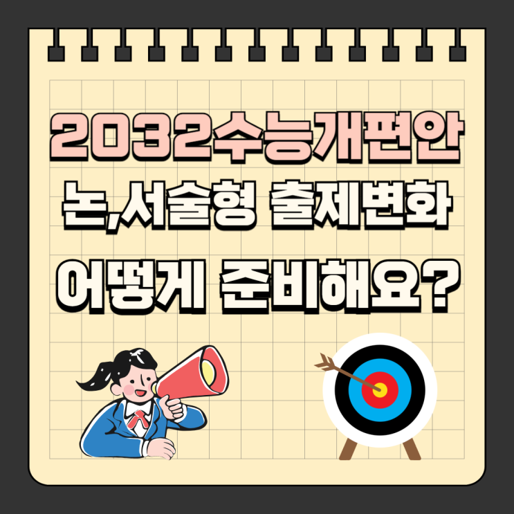 아직 아침저녁으로 쌀쌀하지만 봄이 성큼 다가온 3월입니다. 안녕하세요, 이엠스쿨어학원입니다. 요즘은 입시에 많은 변화가 일어나고 이에 대한 대응을 하기 위해서 긴장을 해서 지켜봐야 하는 시기입니다! 오늘은 2032학년 입시에서 수능시험의 변화가능성에 대한 이야기를 해볼까 합니다! 현재 초등 6학년 자녀는 2032년에 수능을 보게 됩니다. 최근 발표된 경기도 교육감의 수능 개편 방향에 따르면 선택지 중 정답을 고르는 객관식 방식에서 벗어나 논리적으로 서술하고 분석적으로 표현하는 주관식 방식이 도입하자고 하는 요구가 교육감들 사이에 나오고 있습니다! 이러한 변화안에 따르면 수능시험에서 서술형과 논술형 시험을 도입해서....... <img src="https://blogthumb.pstatic.net/MjAyNjAzMTdfMjAy/MDAxNzczNzUwMTg5MDEz.2lGtWo6ml_UxJkDP3LGzTd6Gyz6IBchu_NJS6DmxFsMg.38kjLBwcyjUQSN7hoL9ZRlTa_dOT5kYELZlyINQ1W9Mg.PNG/%C1%A6%B8%F1%C0%BB_%C0%D4%B7%C2%C7%D8%C1%D6%BC%BC%BF%E4_-001_%2845%29.png?type=s3" />